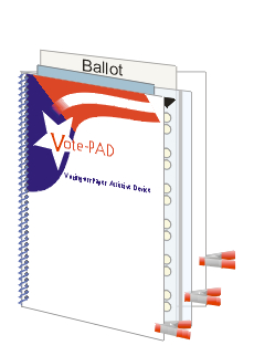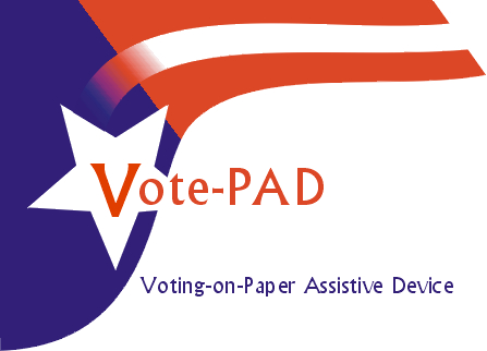 The Voting-on-Paper Assistive Device (Vote-PAD) is an inexpensive, non-electronic, voter-assist alternative that helps most people with visual or dexterity impairments to vote independently.